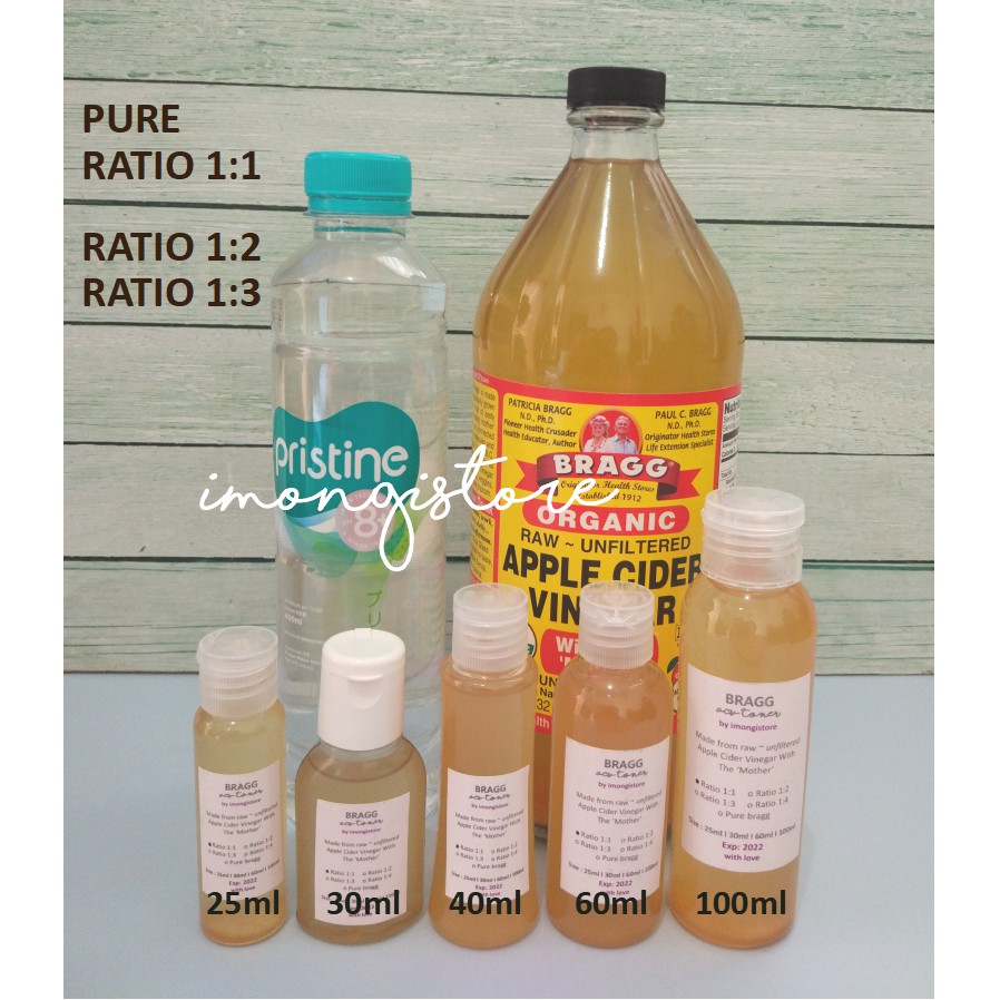 BRAGG TONER PURE] Apple Cider Vinegar Cuka Apel Toner Pure Murni 1:1 1:2 1:3 40 60 100 ml | Shopee Indonesia