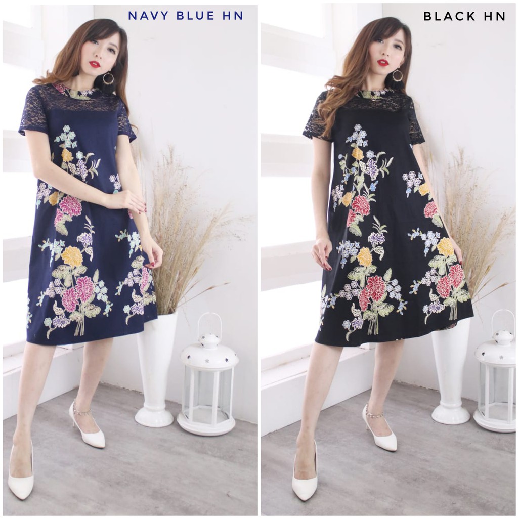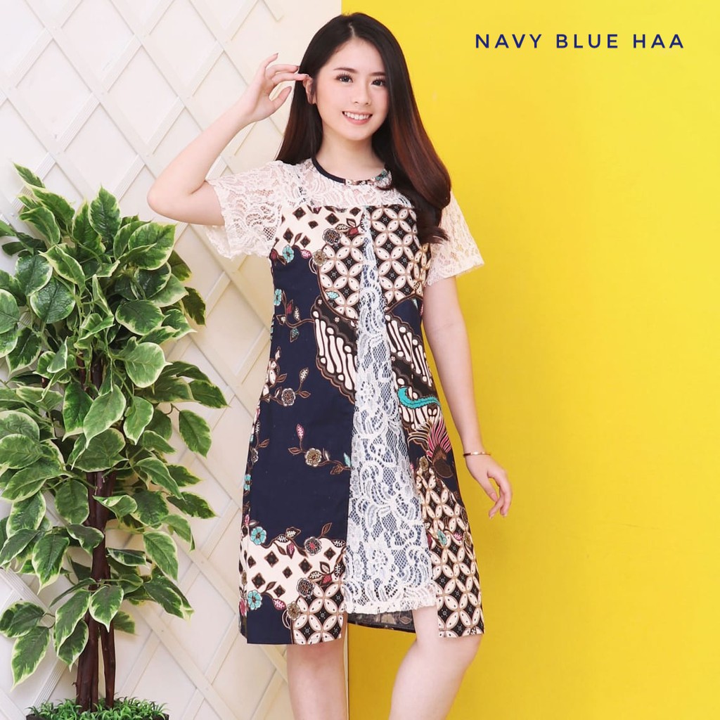 Dress Batik Modern Bahan Katun Stretch Kombinasi Brokat 634-STV | Shopee Indonesia