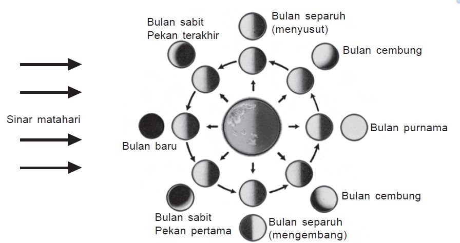 jelaskan fase fase bulan dan posisinya terhadap bumi dan matahari - Brainly.co.id
