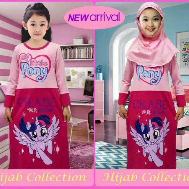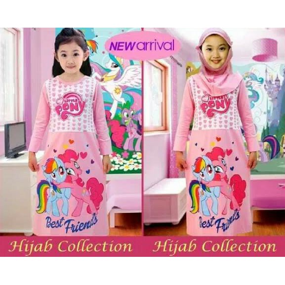 Gamis Hijab Anak Karakter Little Pony Pink Gambar Rainbodash Pinky Pie | Shopee Indonesia