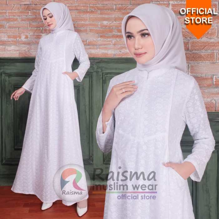 Raismai Gamis Putih / Baju gamis warna putih / Gamis putih wanita / Gamis putih syari / Baju gamis wanita