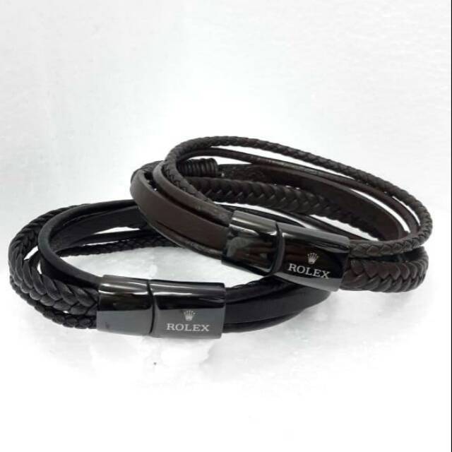 Gelang Tangan Pria Cowok Kulit Black | Shopee Indonesia
