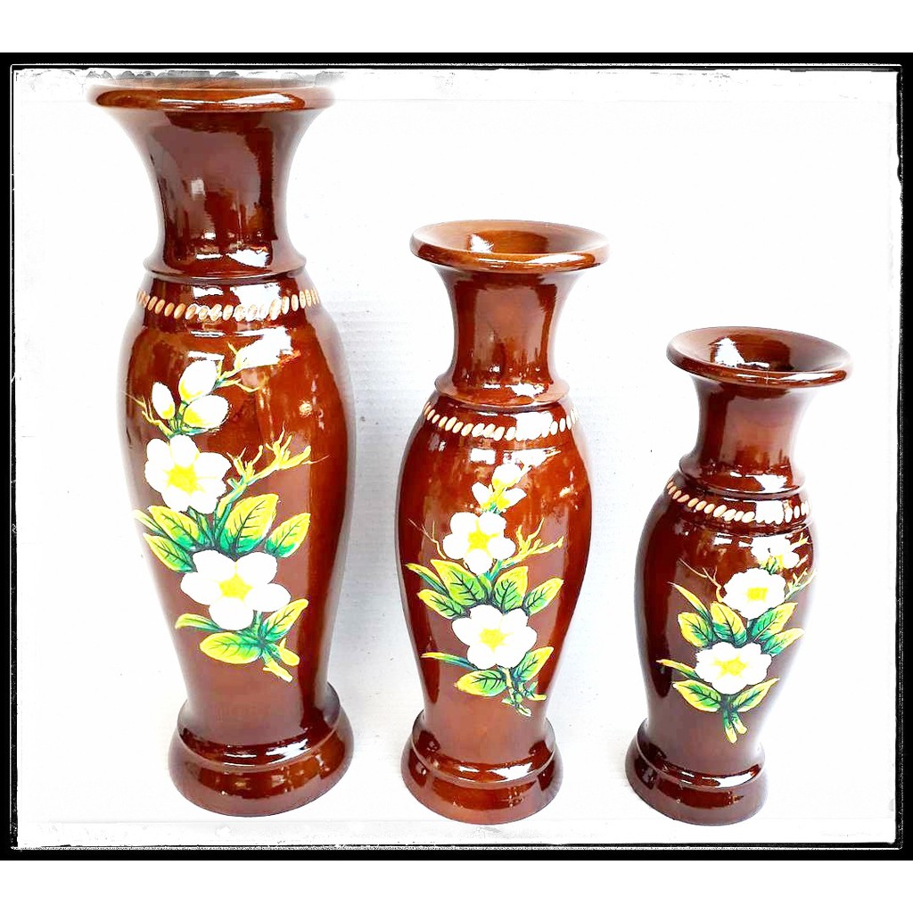 Jual Vas Pot Bunga Guci Polos 1 Set Isi 3 Buah Kerajinan Kayu Jati Pajangan Rumah menarik | Lazada Indonesia