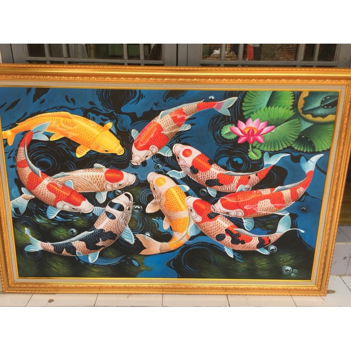 Lukisan Ikan Koi 9 Membentuk Angka 9 ukuran besar 85 x 135 cm | Shopee Indonesia