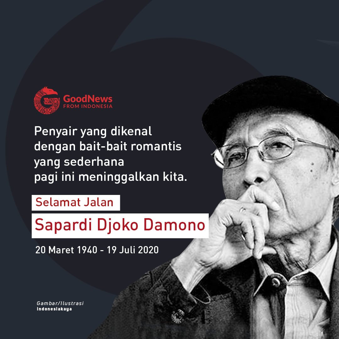 Good News From Indonesia a Twitter: “Kami turut berduka cita atas wafatnya Sastrawan Pak Sapardi Djoko Damono pagi ini. Beristirahatlah dengan tenang..terima kasih untuk segala karya terbaik bagi Negeri Rest in love.