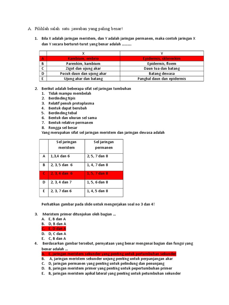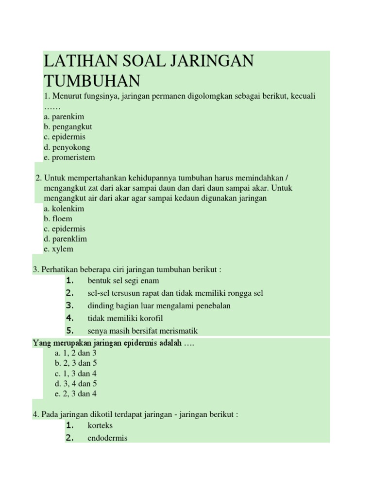 Latihan Soal Jaringan Tumbuhan
