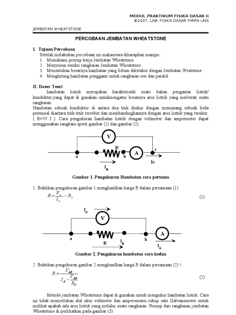 PDF) MODUL VI RANGKAIAN JEMBATAN WHEATSTONE | Sukma Sewiji - Academia.edu