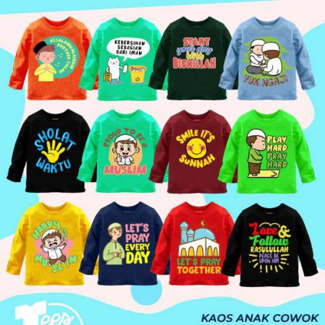 CEWE DAN COWO Kaos karakter anak muslim 2 4 6 8 10 kaos anak muslim baju anak muslimah grosir ecer m | Shopee Indonesia