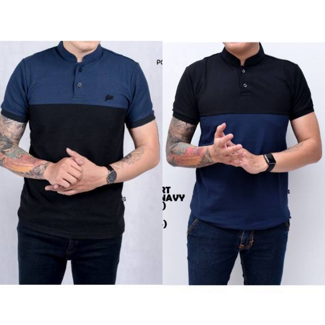 ALJOSA polo shirt pria kerah shanghai baju KAOS BERKERAH SIX cowok kombinasi warna | Shopee Indonesia