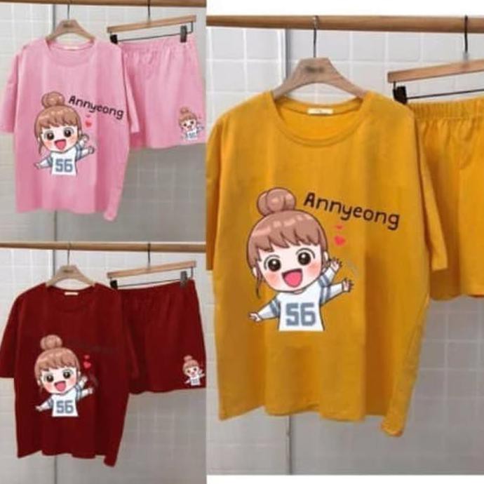 PROMO kaos lebaran wanita SET SETELAN ANNYEONG | Set Annyeong STELAN GAMBAR LUCU | Shopee Indonesia