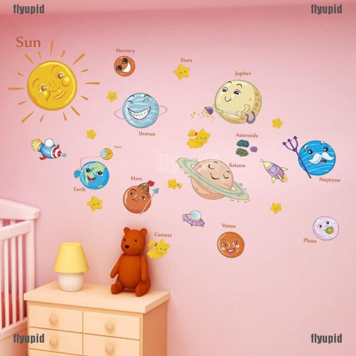 Tata surya Kartun stiker dinding untuk kamar anak-anak Bintang planet luar angkasa Bumi Sun Saturnus | Shopee Indonesia