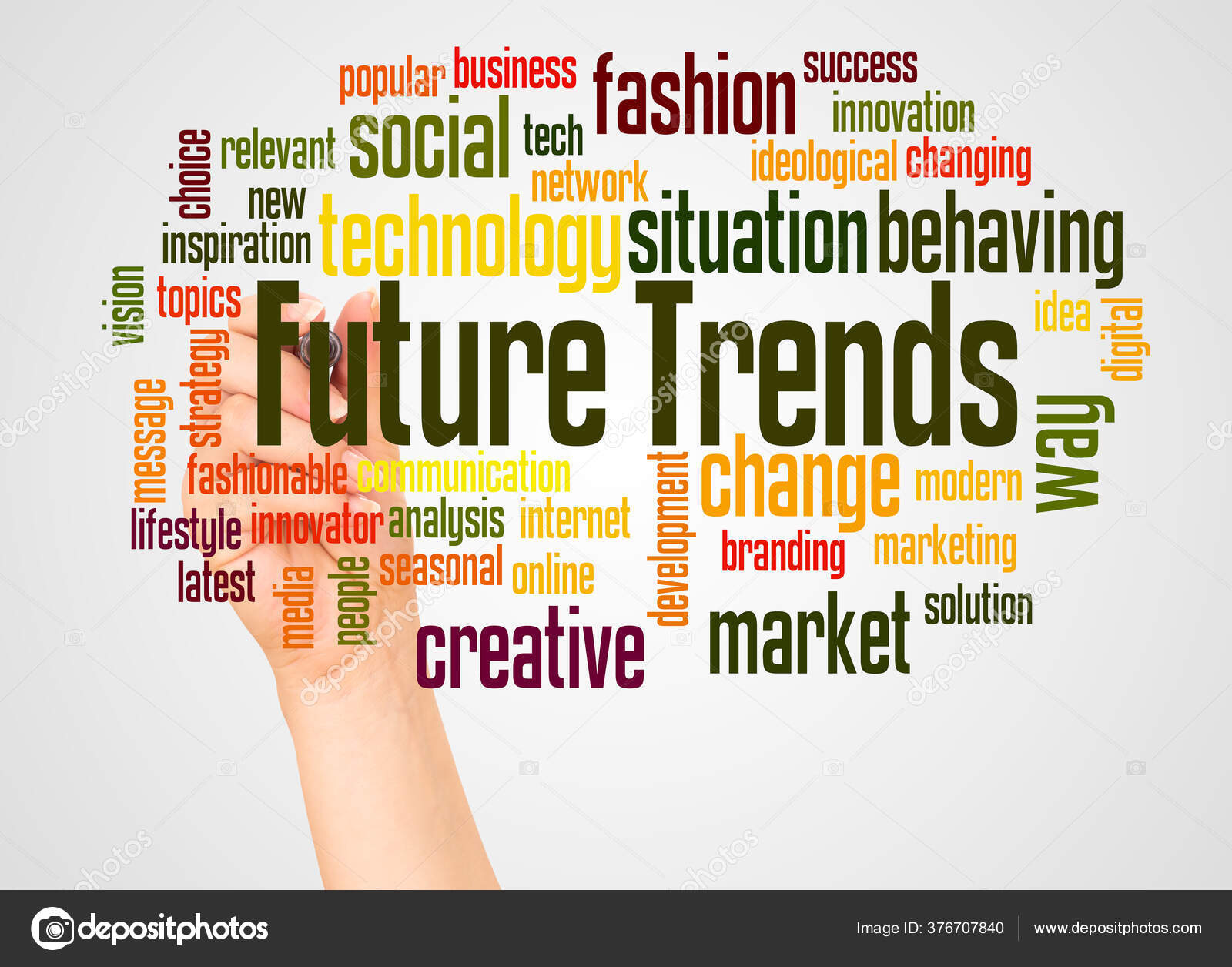 Tren Masa Depan Awan Kata Dan Tangan Dengan Konsep Penanda — Stok Foto © kataklinger #376707840