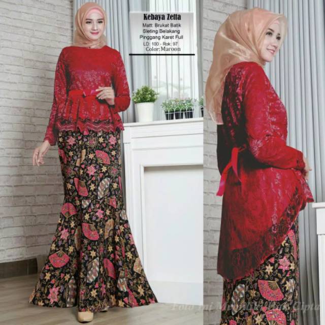 Kebaya pesta muslim zetta brukat batik warna navy hijau botol dan merah maron | Shopee Indonesia
