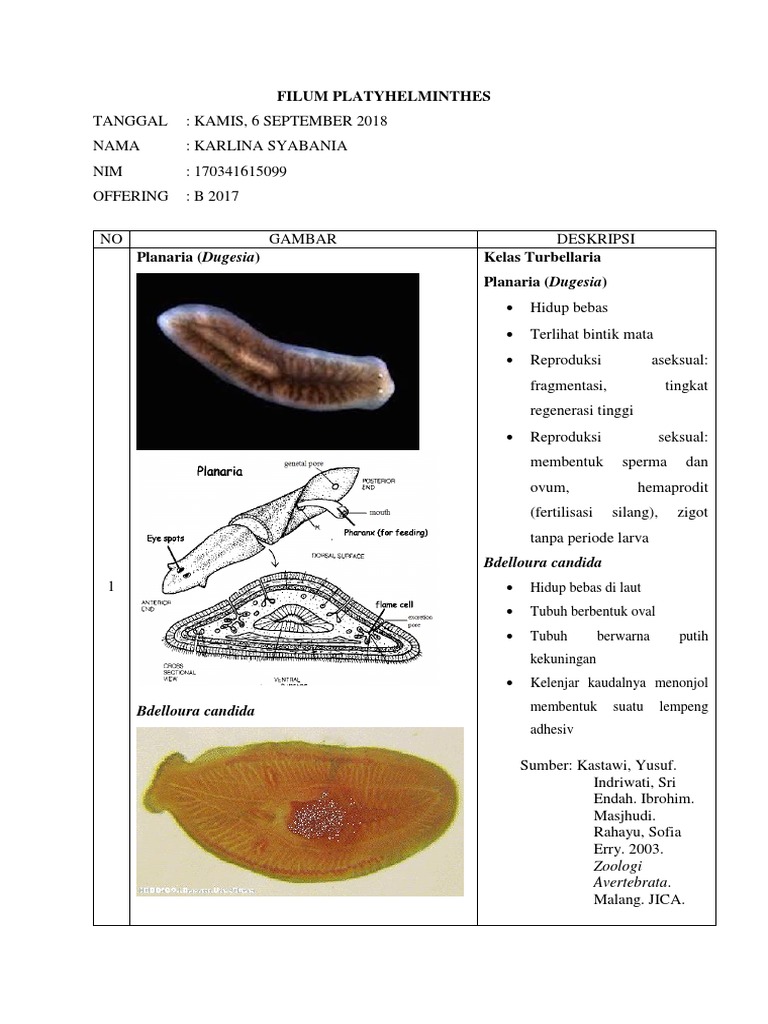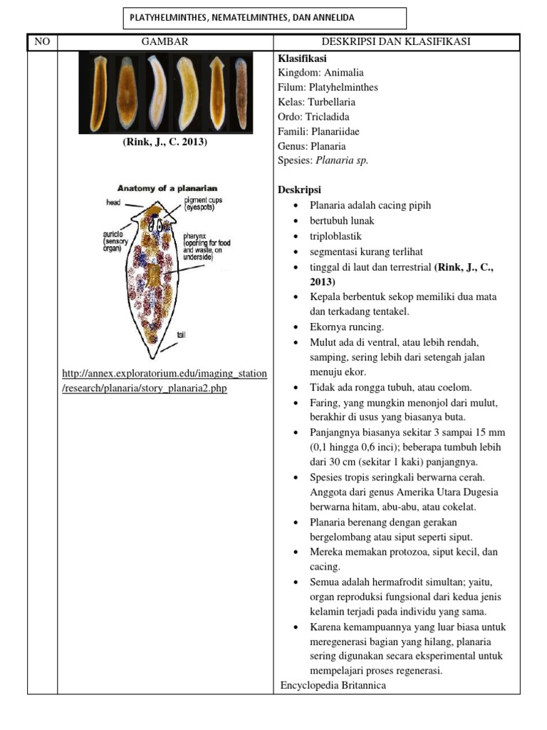 Filum Platyhelminthes: No Gambar Deskripsi