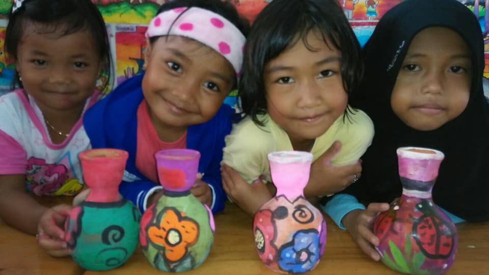 Berkreasi bersama : Membuat Guci indah dari kendi bekas