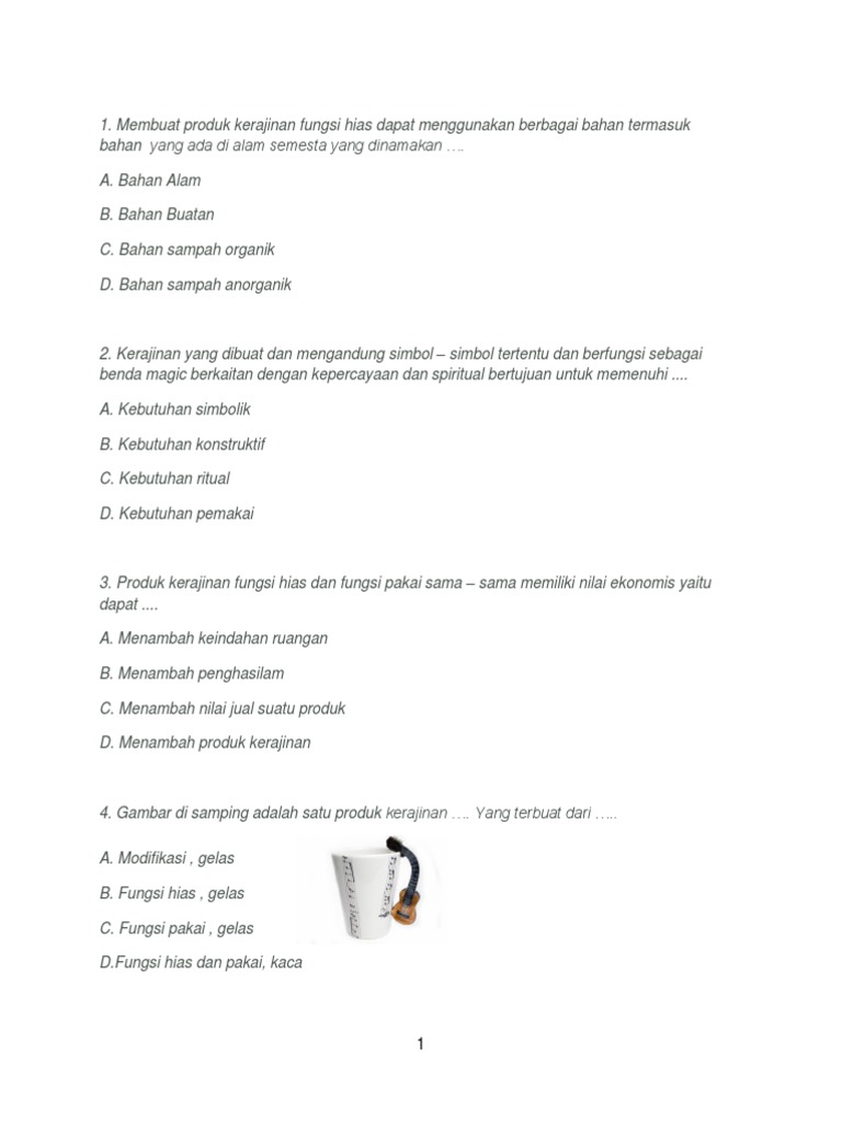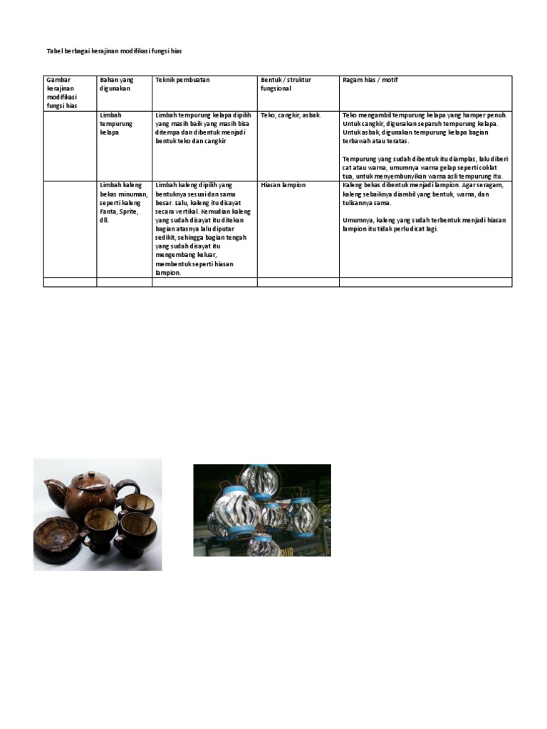 KERAJINAN FUNGSI HIAS. Sumber: Dokumen Kemdikbud Gambar 1.1 Aneka kerajinan Indonesia. - PDF Free Download