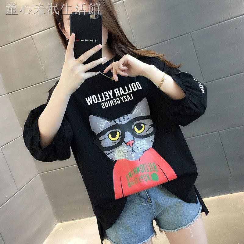 Kaos T-shirt Wanita Lengan Pendek Dengan Potongan Longgar Dan Bahan Katun Gambar Kucing 2020 | Shopee Indonesia