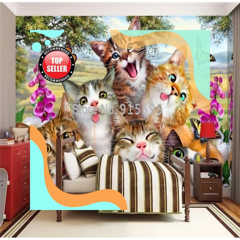 HIGH QUALITY Kustom Ukuran 3D Foto Wallpaper Lucu Kartun Kucing Potret Diri Kamar Anak-anak Kamar | Shopee Indonesia