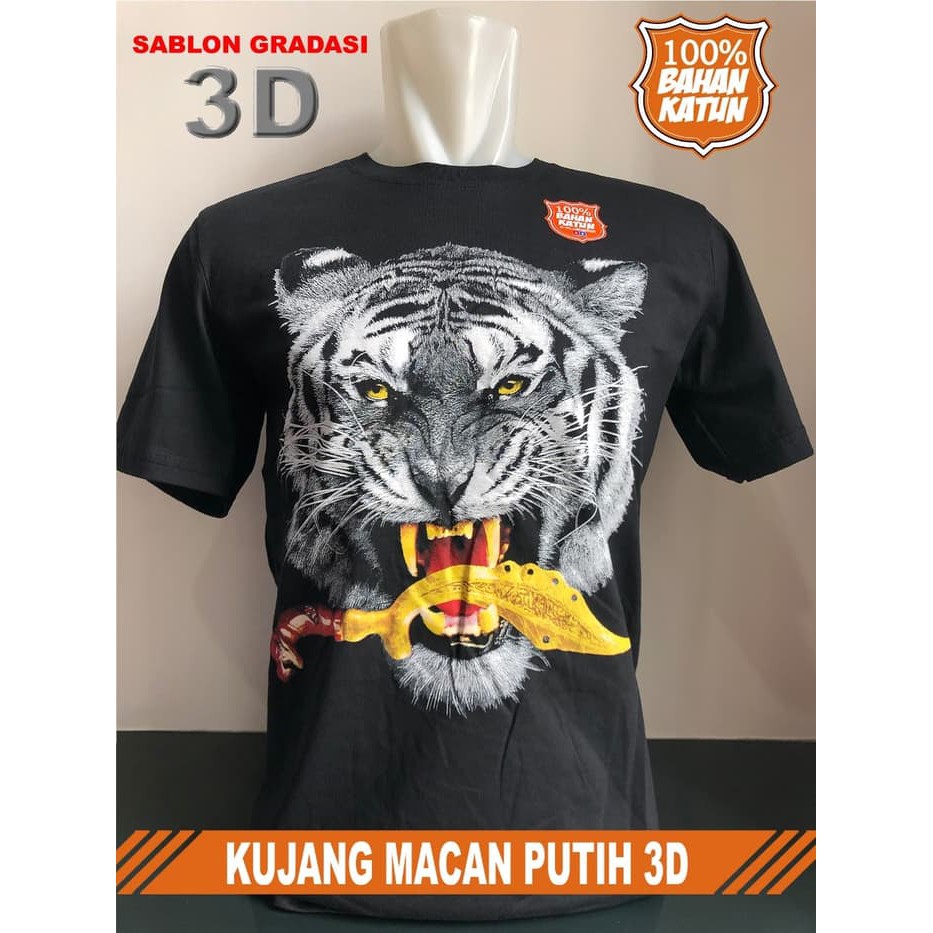 BELI 3 GRATIS 1 KAOS BAJU TSHIRTS TRENDY KUJANG MACAN PUTIH 3D Hitam L | Shopee Indonesia