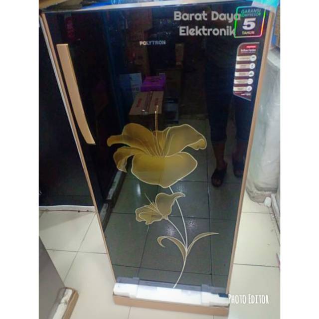 Kulkas Polytron 1 Pintu Belleza 2 Warna Hitam Corak Bunga Like a New - Perlengkapan Rumah - 788056343