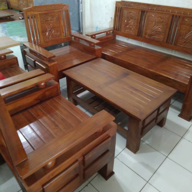 kursi tamu 2,1,1,1 jati jepara ( kota palembang) | Shopee Indonesia