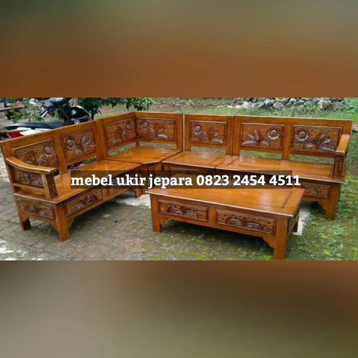 Meja kursi ruang tamu sudut kursi tamu ukir kayu jati ukiran jepara | Shopee Indonesia