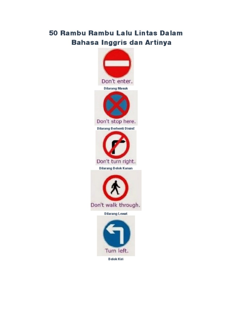 50 Rambu Rambu Lalu Lintas Dalam Bahasa Inggris dan Artinya.docx - 50 Rambu Rambu Lalu Lintas Dalam Bahasa Inggris dan Artinya Belok Kiri Dilarang Masuk | Course Hero