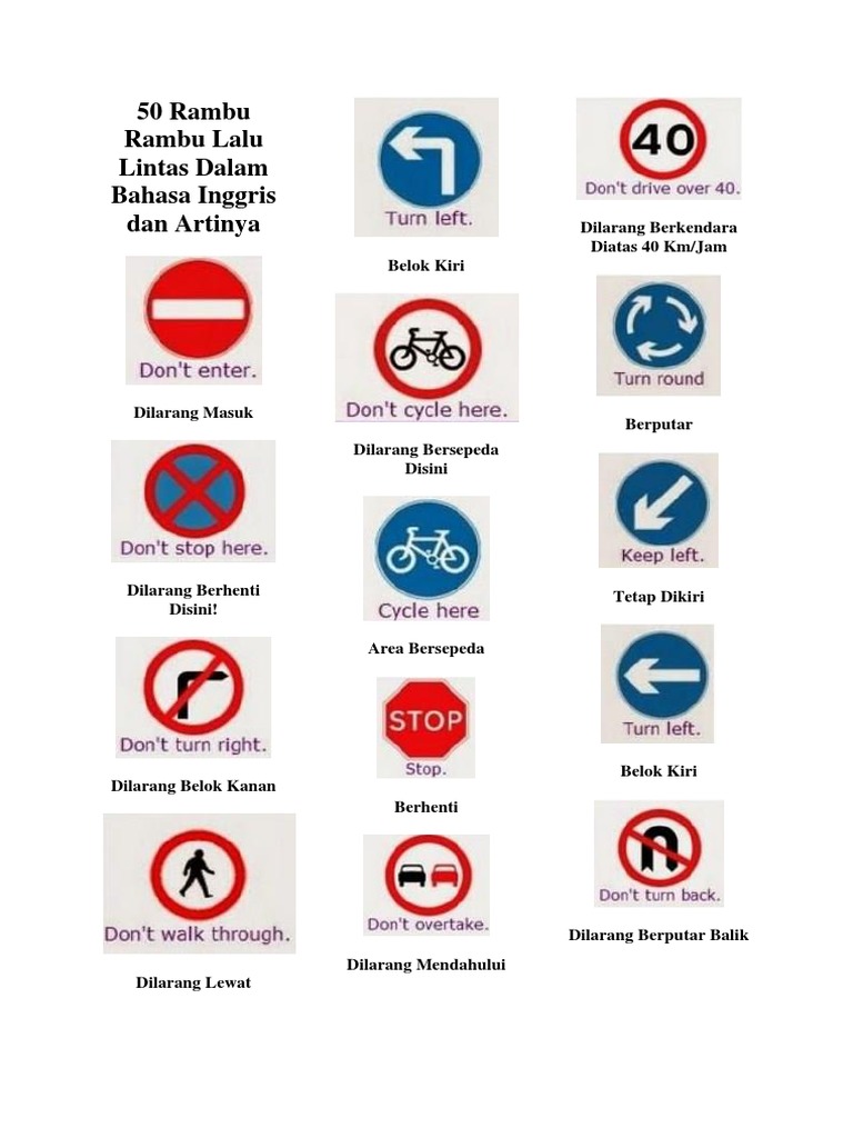 100 Rambu Rambu Lalu Lintas Dalam Bahasa Inggris Dan Artinya [6ngedv5y86lv]
