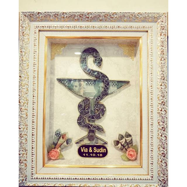Mahar lambang farmasi ular yang melilit gelas/mangkuk Ukuran mahar 30x40 frame putih gold | Shopee Indonesia