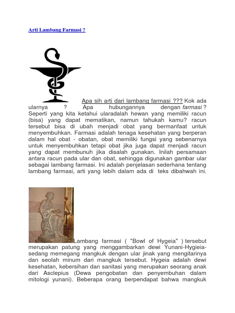 Arti Lambang Farmasi: Arti Lambang Farmasi Atau Arti Cawan Dan Ular Dalam Lambang Farmasi