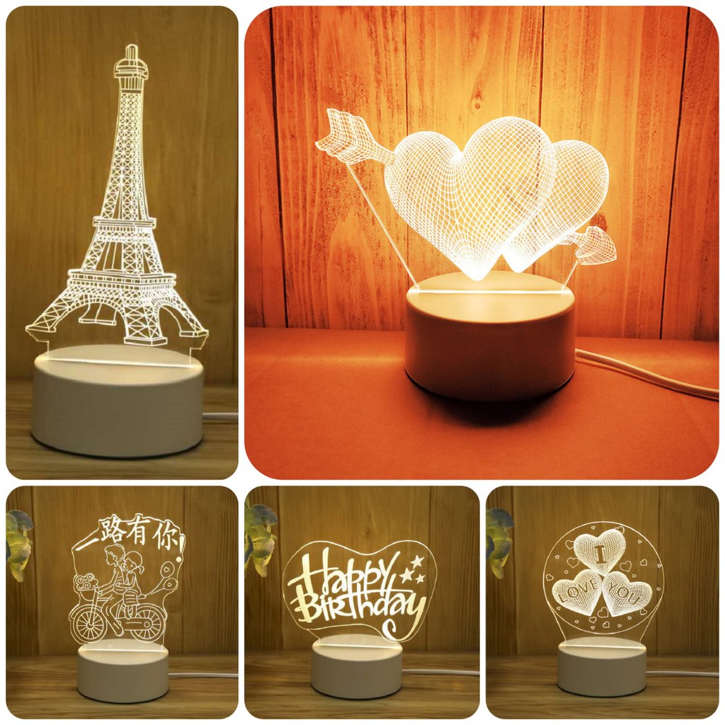 Lampu Tidur Hias LED 3D Transparan 3 Lampu Hias Akrilik LED Lamp Base 3D LED Illusion doraemon menara eifel sarangheyo I LOVE you lampu 3D animasi | Lazada Indonesia