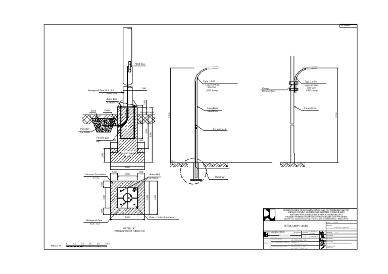 Desain dan Ukuran Tiang Lampu PJU Antik, Detail AutoCAD Tiang Lampu