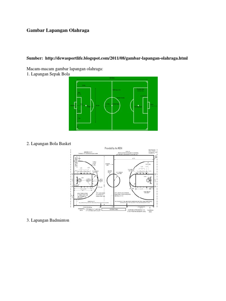 17 Gambar Lapangan Olahraga beserta Ukurannya - Artikel & Materi