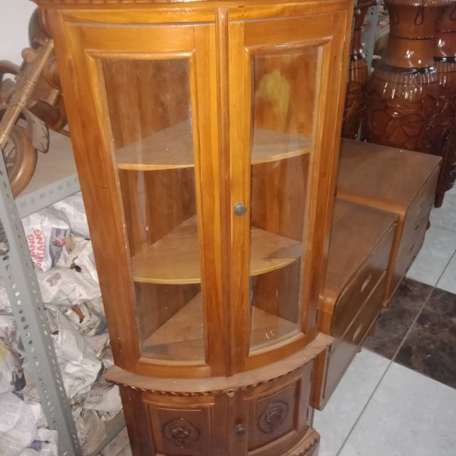 Jual Lemari Hias Sudut Jati Lemari Pajangan Sudut Free Ongkir Jabodetabek - Kota Bekasi - Pahala Furniture | Tokopedia