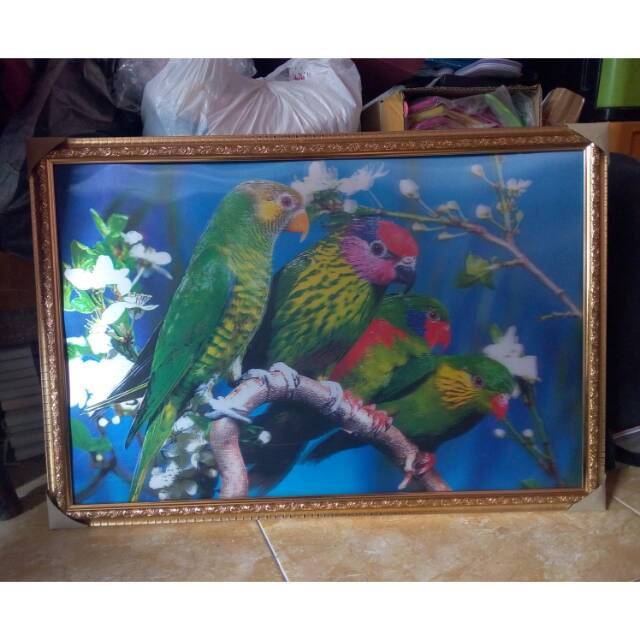 1 pcs gambar lukisan 3 dimensi motif burung +frame 40x60cm | Shopee Indonesia