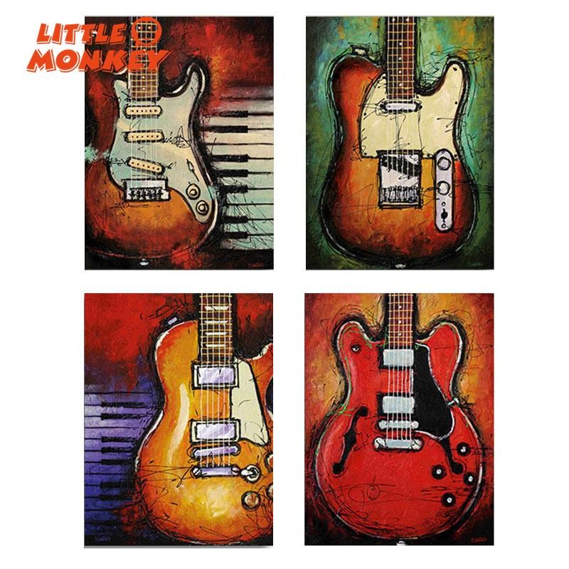 4Pcs Lukisan Cat Minyak dengan Bahan Kanvas dan Gambar Gitar Musik untuk Dekorasi Rumah | Shopee Indonesia