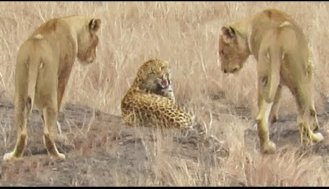Macan Tutul Ini Dikepung Kawanan Singa, Ini yang Selanjutnya Terjadi - ikutrame.com