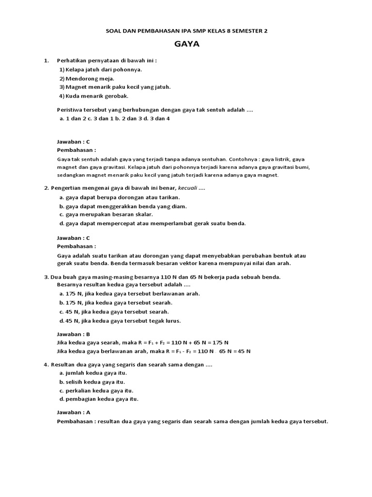 SOAL DAN PEMBAHASAN IPA SMP KELAS 8 SEME