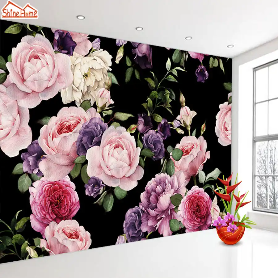 Shinehome Besar Kustom 3D Wallpaper Foto Hitam Putih Wallpaper untuk 3 D Ruang Tamu Mawar Bunga Peony Dinding Rumah Tangga kertas| | - AliExpress