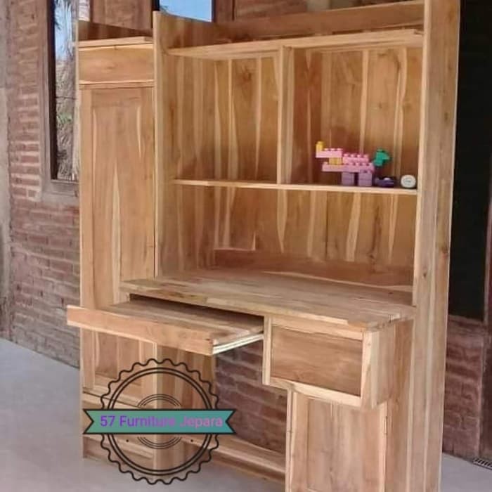meja belajar lemari meja komputer anak minimalis kayu jati di Lapak Sakha Jati Furniture Jepara | Bukalapak