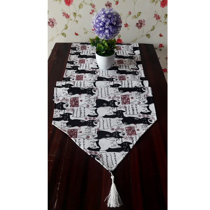 Taplak Meja / Table Runner Bahan Kanvas Tebal Motif Kucing Hitam Putih / Taplak Meja Makan/Meja Tamu | Shopee Indonesia