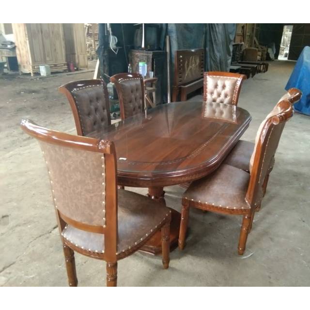 SET Meja makan oval kaca 4 dan 6 kursi Salinah jati jepara grade A | Shopee Indonesia