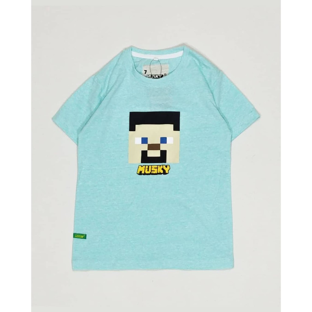 Musky - T-Shirt Kaos Anak Gambar - Minecraft Steve Sky Blue 9958 | Shopee Indonesia