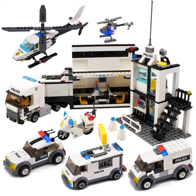 Kota Polisi Mini Gambar Sepeda Motor Kendaraan Helikopter Tahanan Mobil Perahu Blok Bangunan Batu Bata Mainan untuk Anak| | - AliExpress