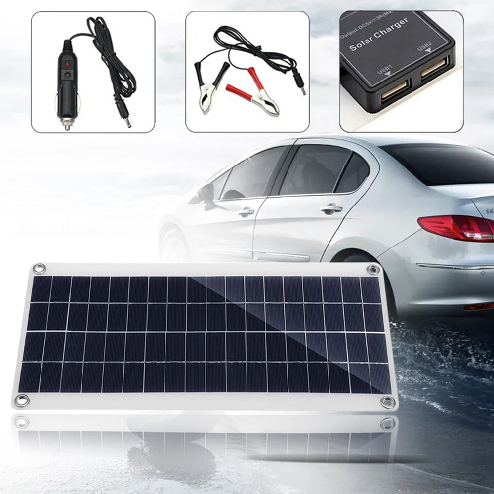 30W 12V Dual USB Fleksibel Panel Tenaga Surya/Solar Panel Kit Klip Buaya Outdoor Mobil Charger Power Baterai|Sel surya| - AliExpress