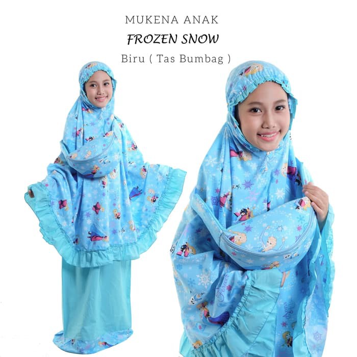 mukena anak karakter frozen snow blue tas bumbag mukena anak gambar motif frozen katun adem tk sd | Shopee Indonesia