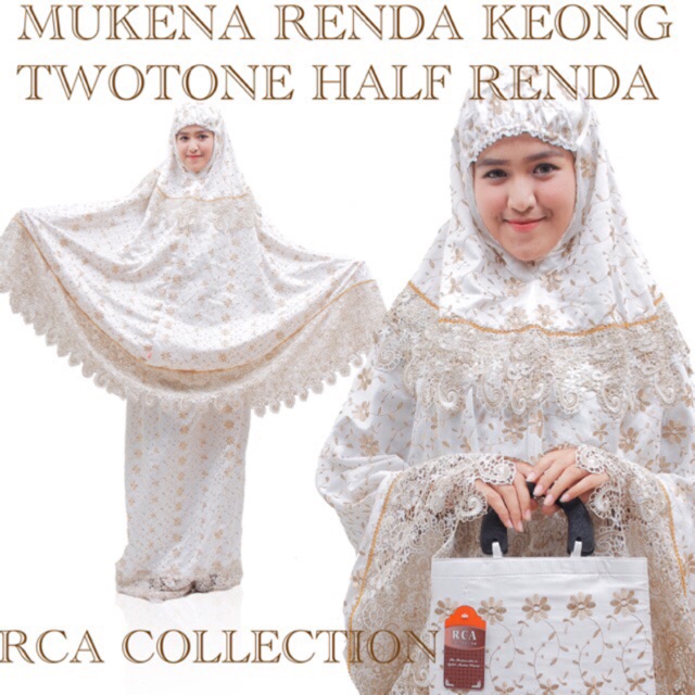 Mukena Renda Keong Twotone Half Renda Dari Bahan Sutra Paris Plus Swarovsky | Shopee Indonesia