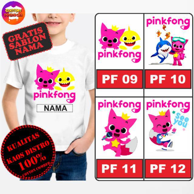 PROMO KAOS ANAK / BAJU ANAK GAMBAR PINKFONG MURAH BAGUS FREE SABLON NAMA. BAHAN KATUN. ADA 18 GAMBAR | Shopee Indonesia