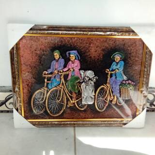 Lukisan timbul gambar naik sepeda ontel 32 x 43 | Shopee Indonesia
