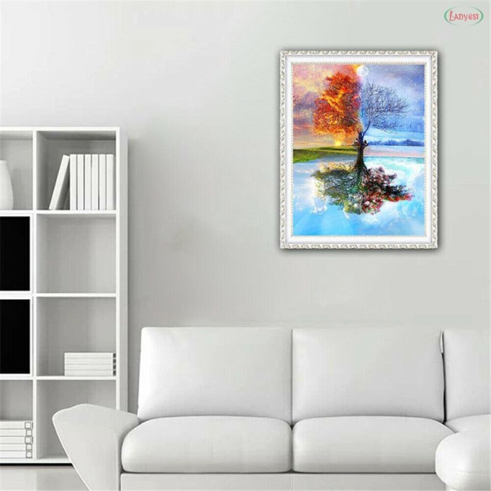 Set 2Pcs Lukisan Diamond 5D dengan Gambar Pohon Harapan untuk Hiasan Dekorasi Rumah | Shopee Indonesia